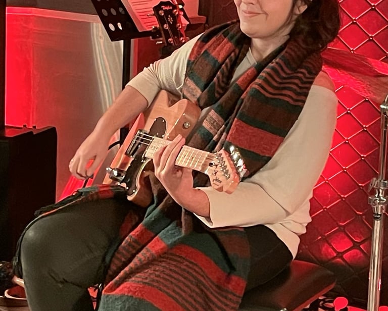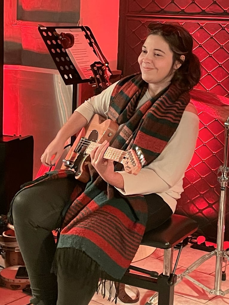 Tout comme Raphaël, la talentueuse Valentine enseigne aux élèves de l'AMSP depuis 2017. Valentine la guitariste, la chanteuse, la rockeuse... et la coach d'un groupe d'ados et d'un groupe d'adultes.